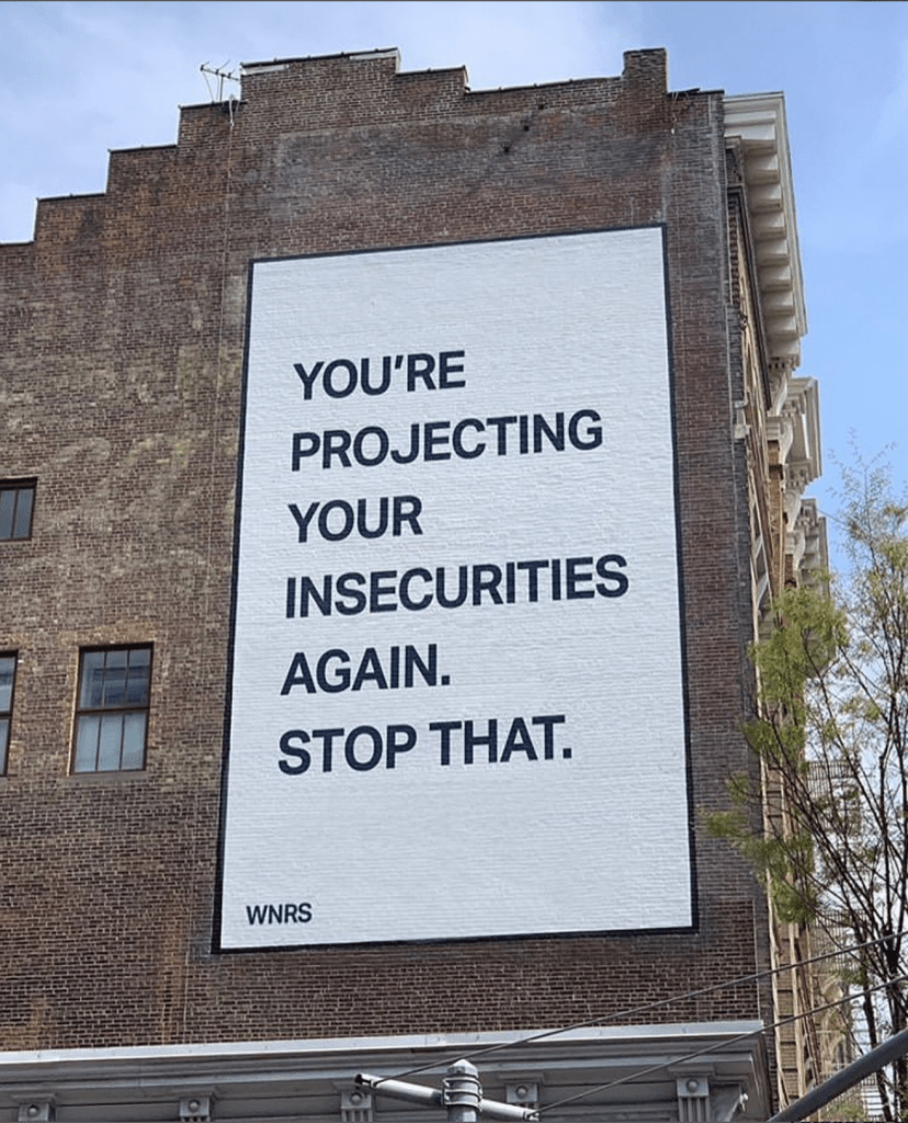 Freud outlines many defense mechanisms through his work. However, the most insidious of all defense mechanisms is “projection,” which is when somebody attributes their own motivations, thoughts, beliefs, feelings, etc. to the world outside of them, or onto a group of “others,” rather than taking ownership of their own, unwanted parts. It is externalizing what is actually internal, pinning it onto someone else rather than addressing it within.