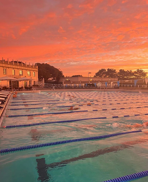 USD’s pool during the sunrise, a familiar sight to the swim and dive team. Photo courtesy of Hannah Hintermeister