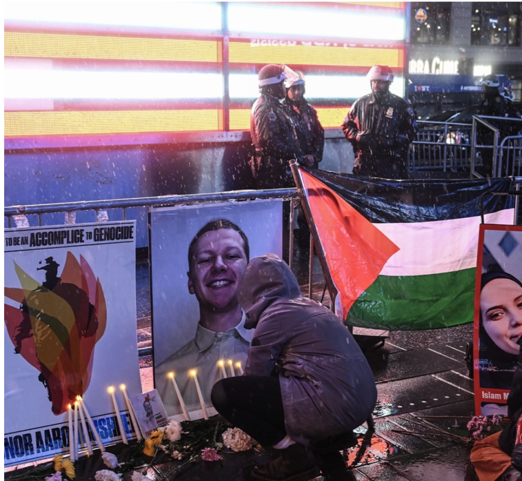 At a vigil, hundreds of people gathered to remember Aaron Bushnell. Photo courtesy of @gzt/Instagram
