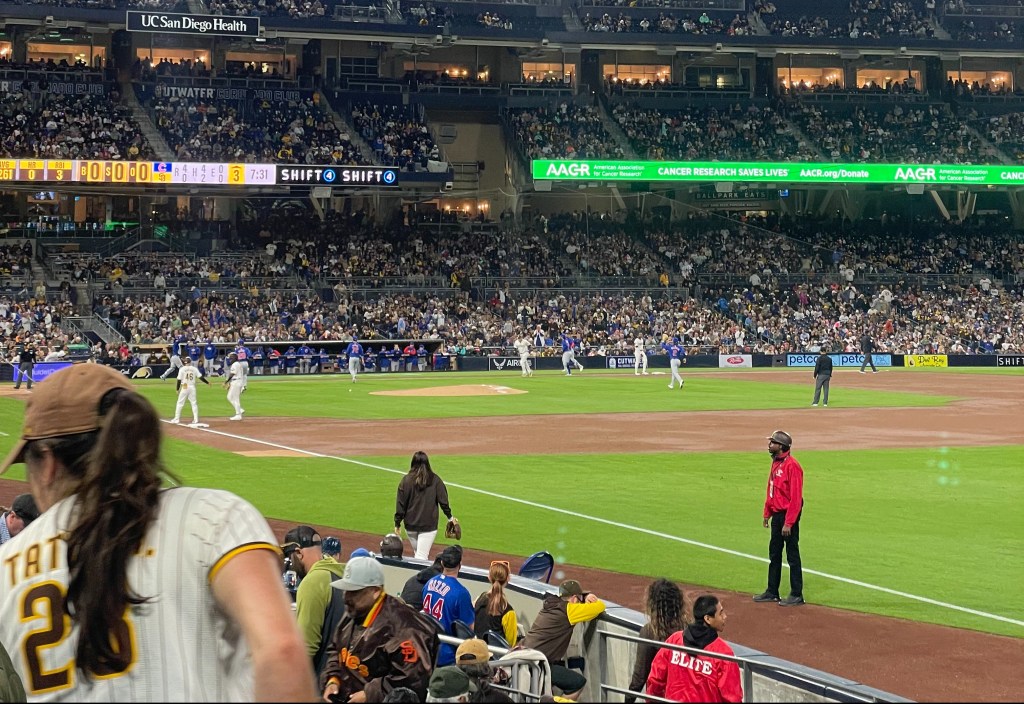Flashback to Monday, April 8: it’s the Torero Program Board’s chosen game day for USD students to attend and take part in the Padres experience. Before the game, Downtown San Diego was bumping — people on the streets wear the signature brown, yellow and special edition Padres jerseys. Game time was at 6:40 p.m., and tonight’s opponent was the Chicago Cubs.