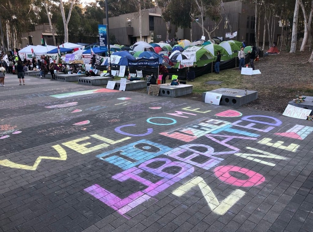 UCSD students gathered peacefully in their encampment for five days, before it was removed. Photo courtesy of @sjp.ucsd /Instagram