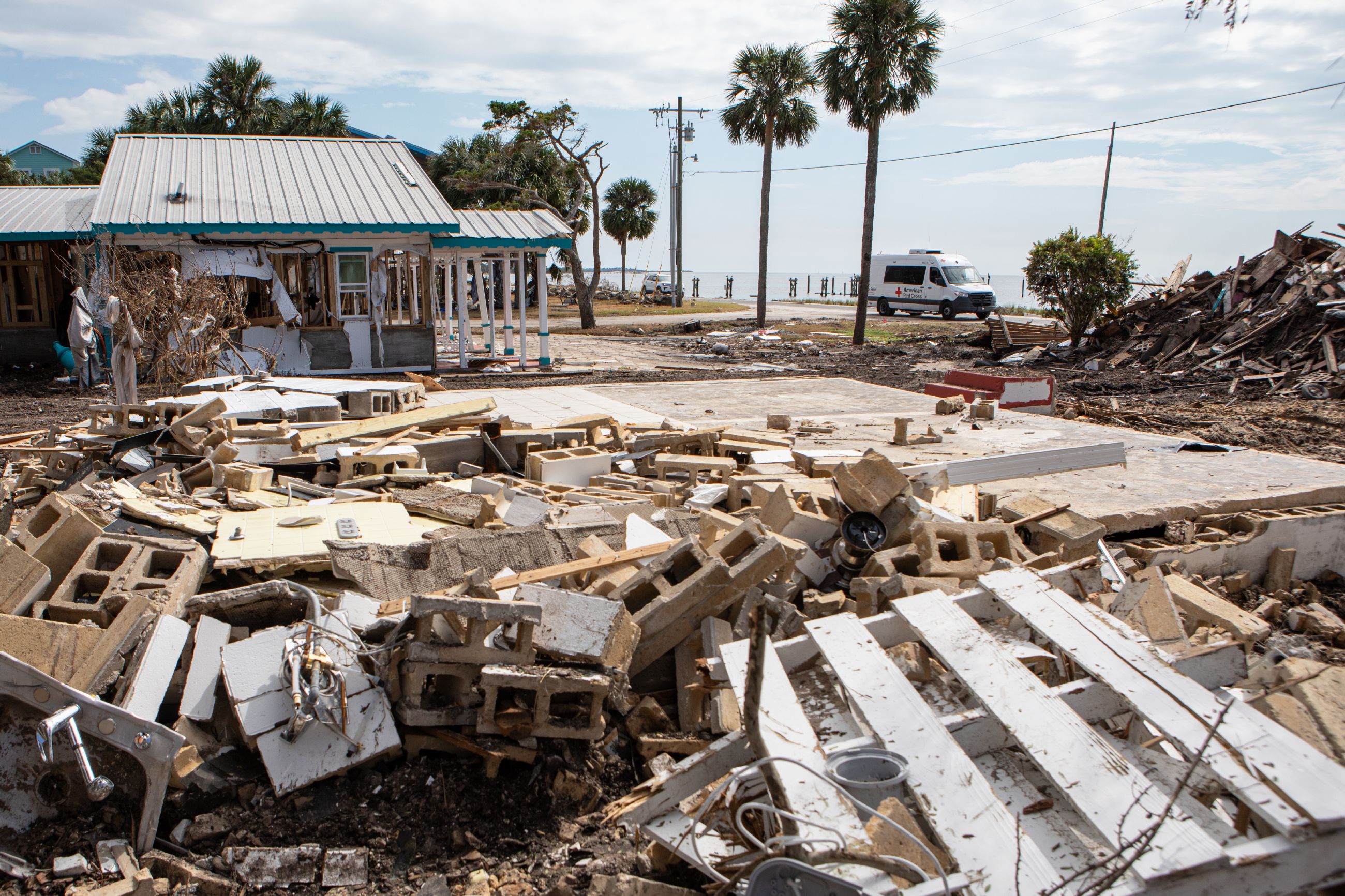 High winds in coastal communities destroy homes and businesses. Photo courtesy of @americanredcross/X