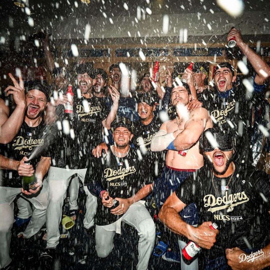 Dodgers celebrate after defeating Padres in the playoffs. Photo courtesy of @dodgers/Instagram