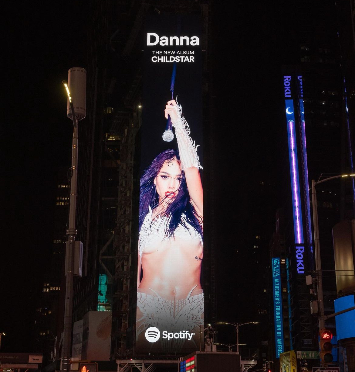 Danna Paola’s new album ‘Childstar’ on the New York Times Square billboard. Photo courtesy of @danna/Instagram