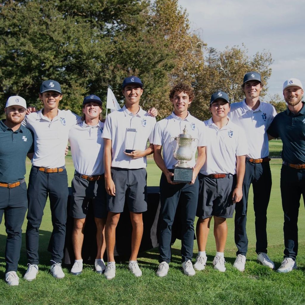 USD men’s golf team with first place trophy. Photo courtesy of @jaden_cantafio/Instagram