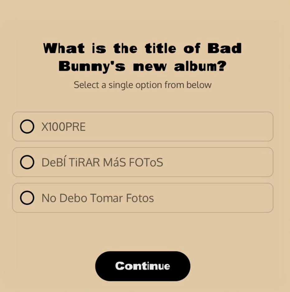 Bad Bunny attached a quiz to his residency’s ticket pre-sale to prioritize ‘real fans.’ Photo courtesy of @popfaction/Instagram