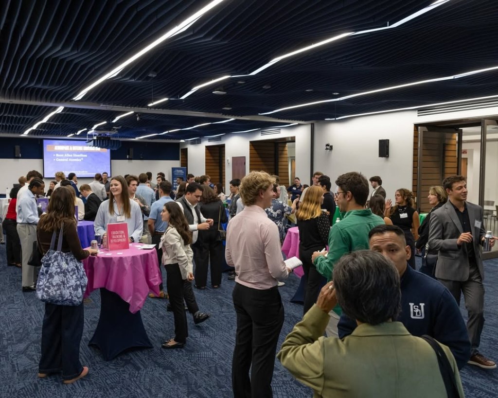 Students in the Knauss School of Business often attend networking events in search of jobs.