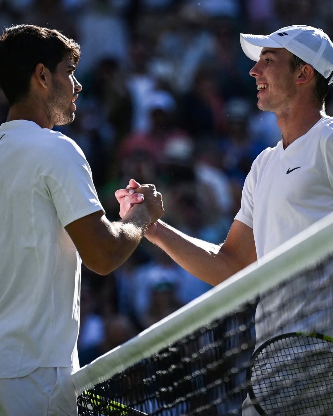 Tarvet shakes Alcaraz’s hand after the match at Wimbledon. Photo courtesy of @usd_tennis/Instagram