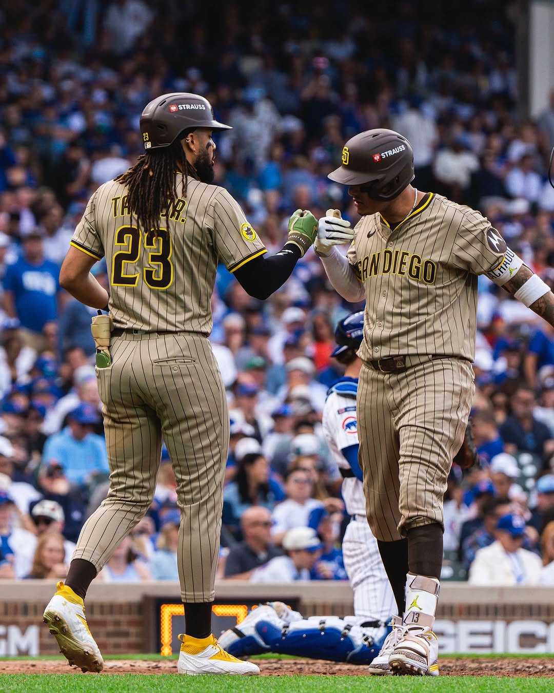 Machado hit a first pitch splitter for a two-run home run at Wrigley Field. Photo courtesy of @padres/Instagram
