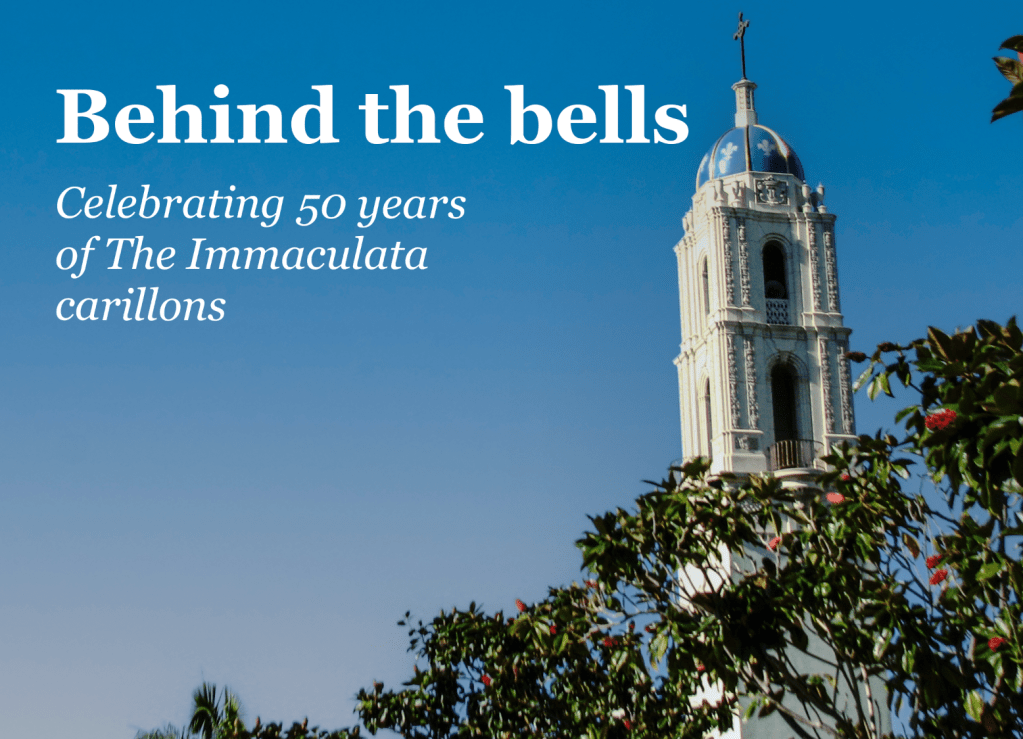 Built in 1959, The Immaculata Chapel never held the large brass bells that many students assume are hoisted in the 167-foot-tall tower. For the first fifteen years of the chapel’s history, the bell tower was silent — until a donation from former trustee and builder of Pechanga Arena A. Eugene Trepte caused the University to make noise.