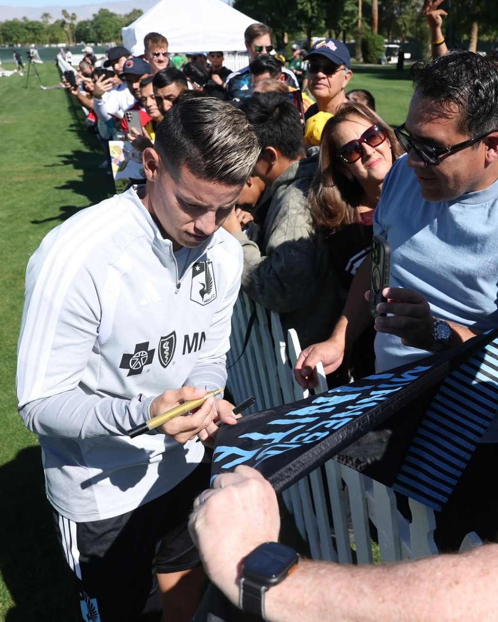 James Rodriguez is seen signing fans’ merch after practice. Photo courtesy of @mnufc/Instagram