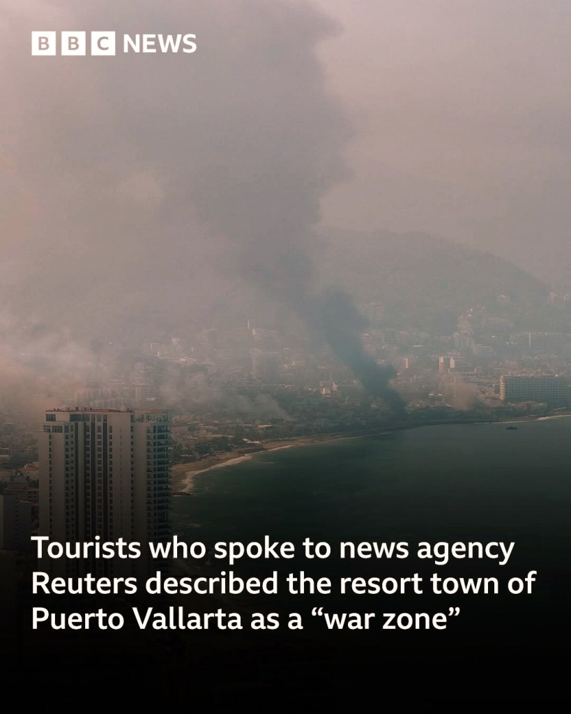 Fires and explosions spread across Mexico following the death of El Mencho. Photo courtesy of @bbcnews/Instagram