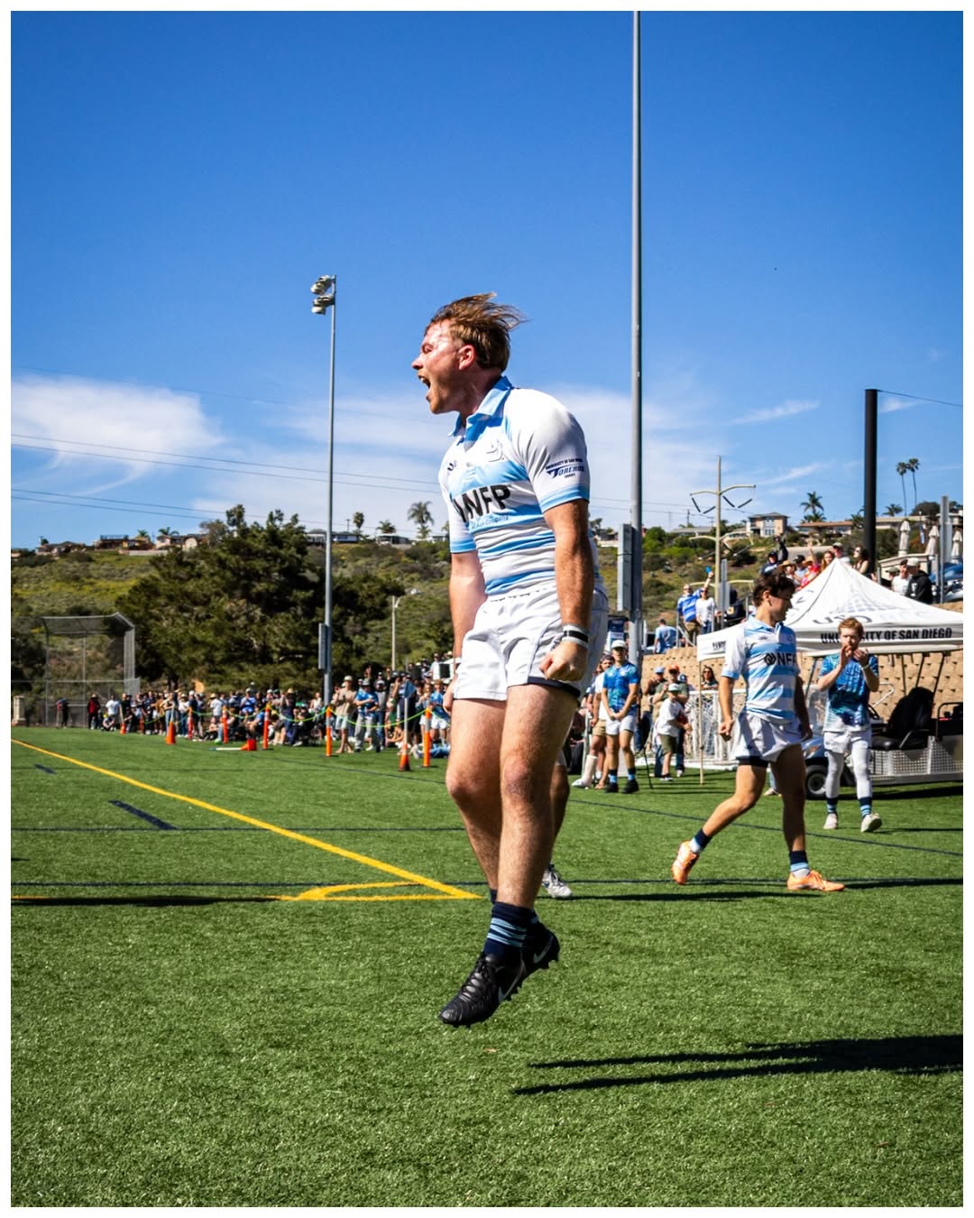 USD player Vaughn Foust celebrates on the pitch. Photo courtesy of @usdrugby/Instagram